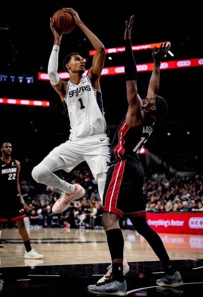 这场比赛的上半场,热火依靠整体防守一度限制住了文班亚马的发挥,团队篮球打得风生水起,反客为主占据主动,若不是文班亚马在上半场尾声阶段迎来爆发,马刺很可能将带着落后进入中场休息,而阿德巴约的那一记隔扣,更像是点燃文班亚马斗志的导火索,进入下半场,这位法国天才彻底接管比赛,第三节,他凭借柔和的手感和高效的护筐,率队打出一波高潮,将分差拉开到两位数