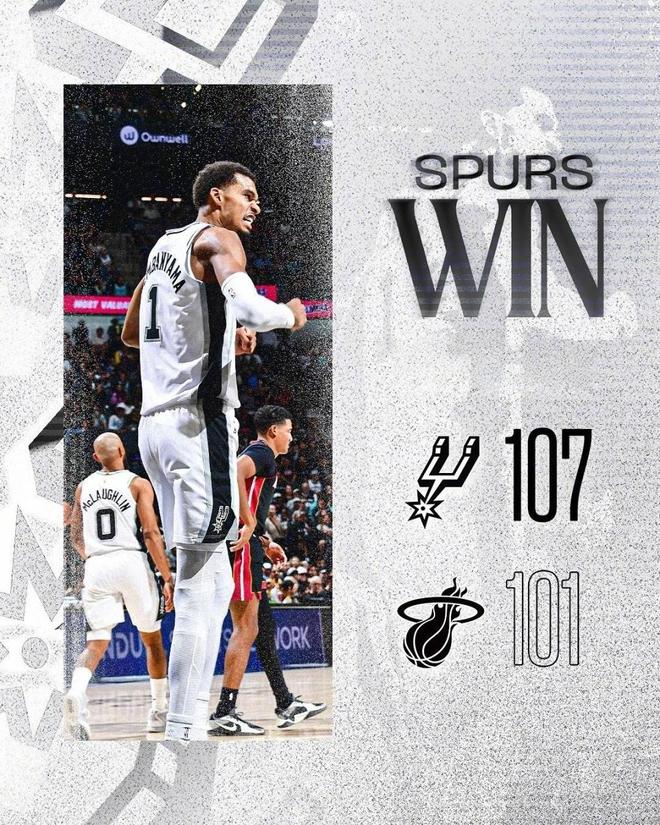 - 2025年10月31日 马刺灭火5连胜&队史最佳开局 文班27+18+6+5帽 阿德巴约31+10