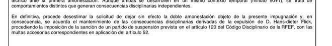 弗里克在对阵赫罗纳的比赛中因抱怨裁判,短时间内迅速吃到两黄被罚下。赛后这个判罚也引发了争议,巴萨对此进行了上诉,但最终纪律委员会驳回了巴萨的上诉,弗里克仍旧被禁赛1场。