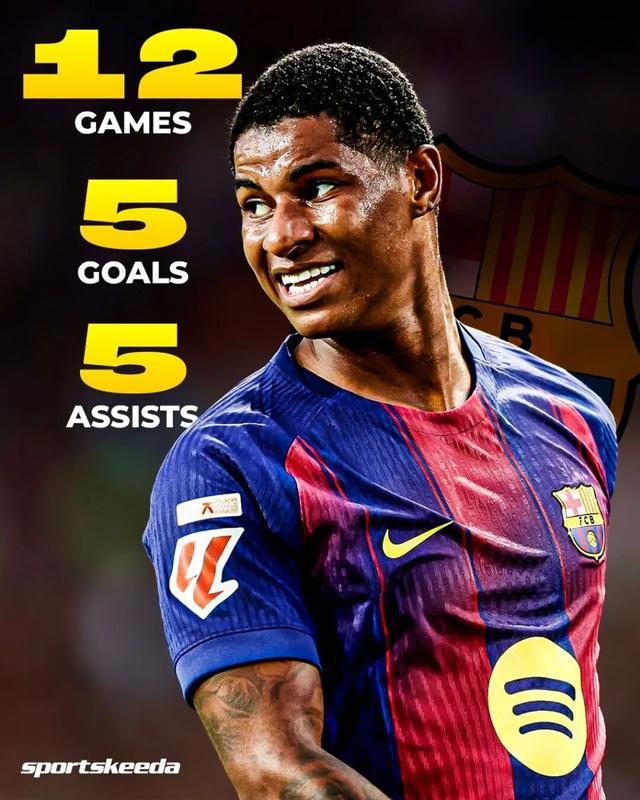 欧冠联赛阶段第3轮比赛,拉什福德梅开二度+造点,帮助巴萨主场6-1击败奥林匹亚科斯。自今年夏窗租借加盟巴萨以来,拉什福德在前12场比赛中保持全勤,出场时间达到了799分钟。与此同时,拉什福德打进5粒进球,送出5次助攻,成为巴萨队内的“射手王+助攻王”。
